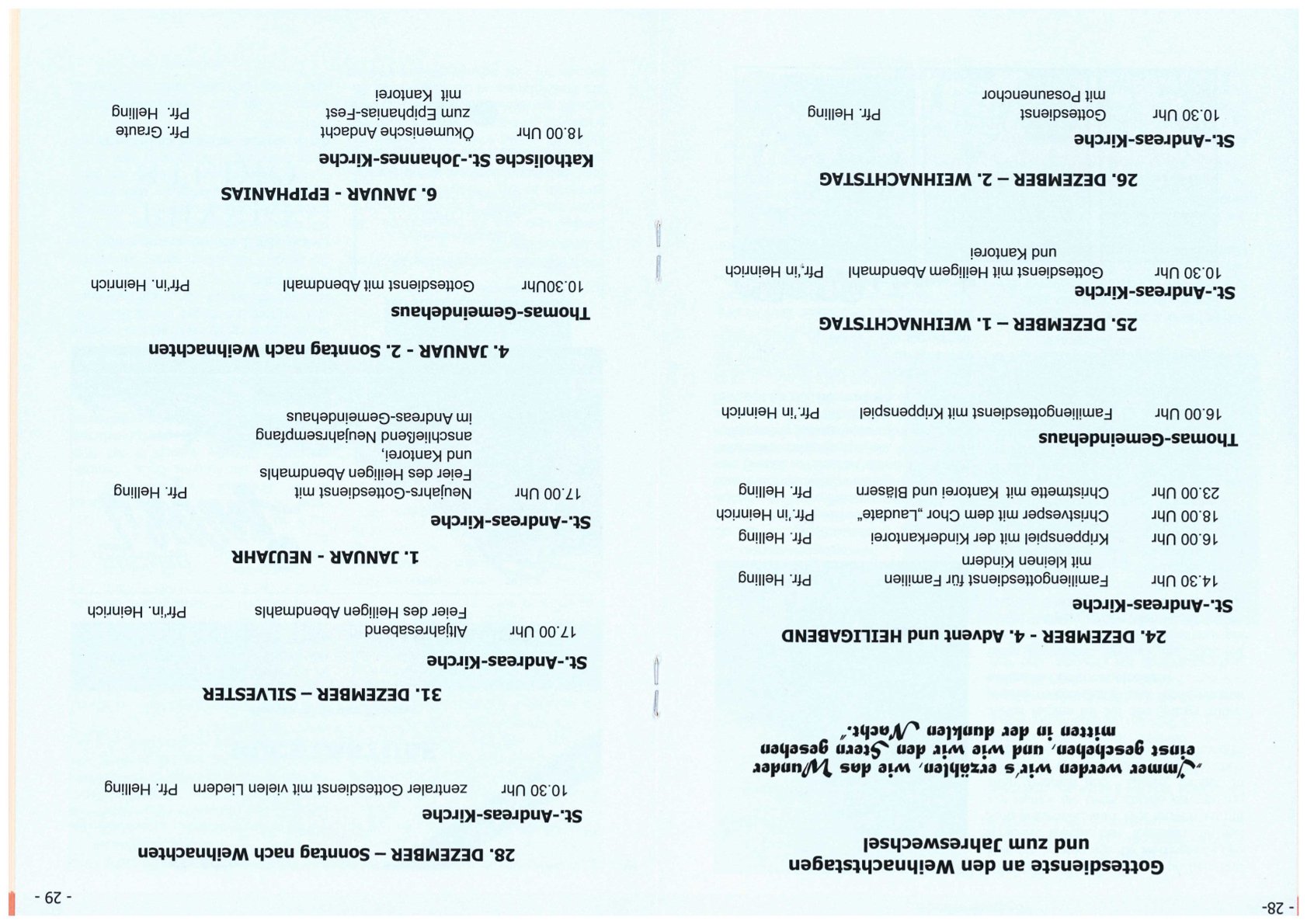 Gottesdienste an Weihnachten und zum Jahreswechsel