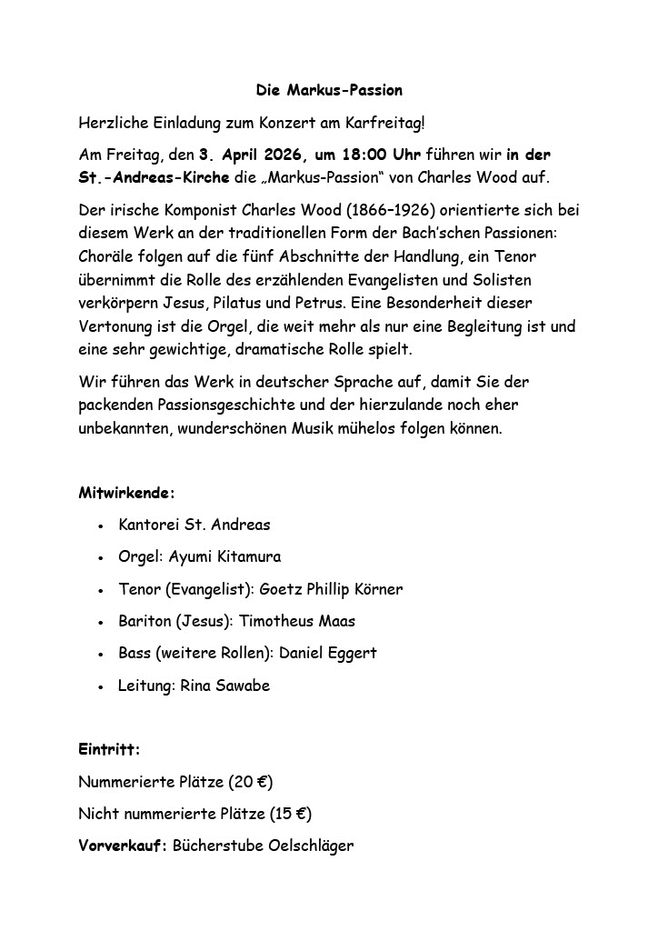 10.30 Uhr St.-Andreas-Kirche,