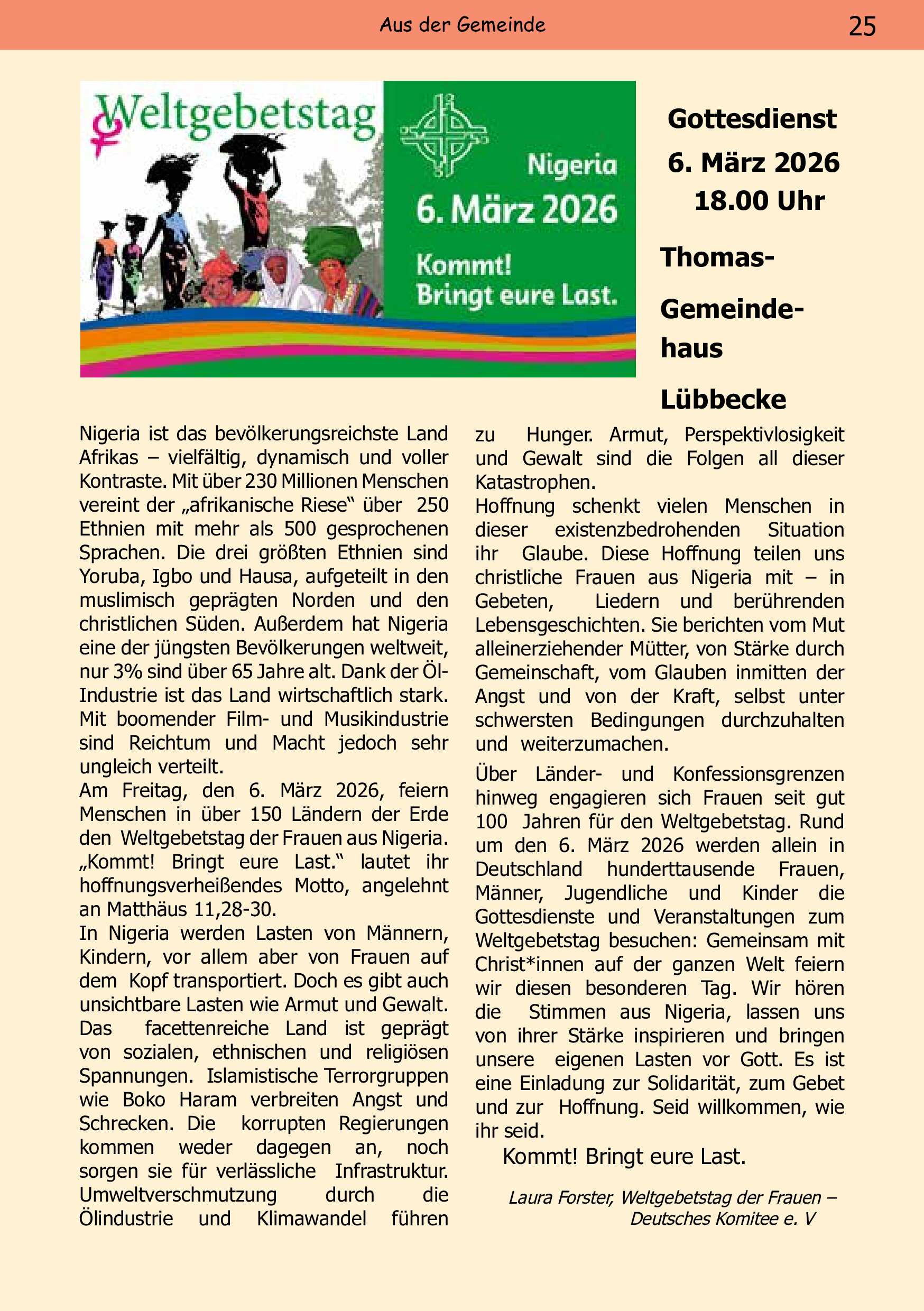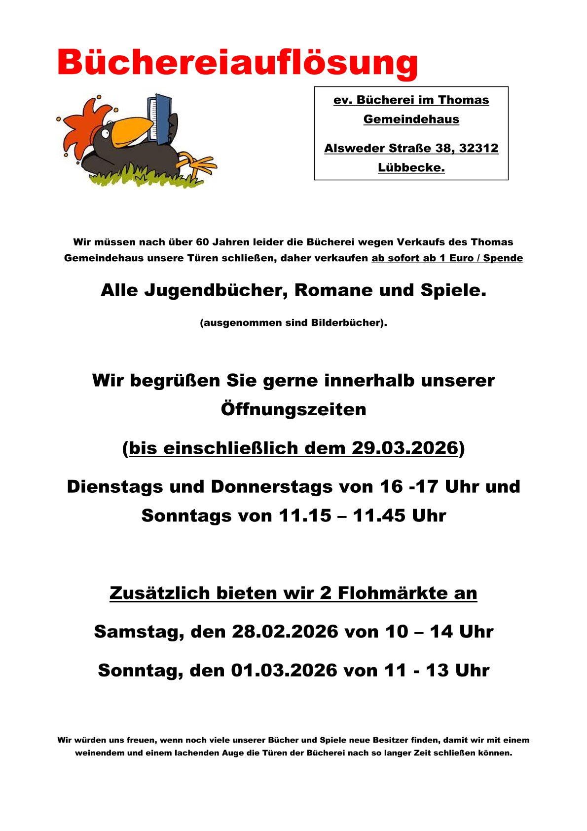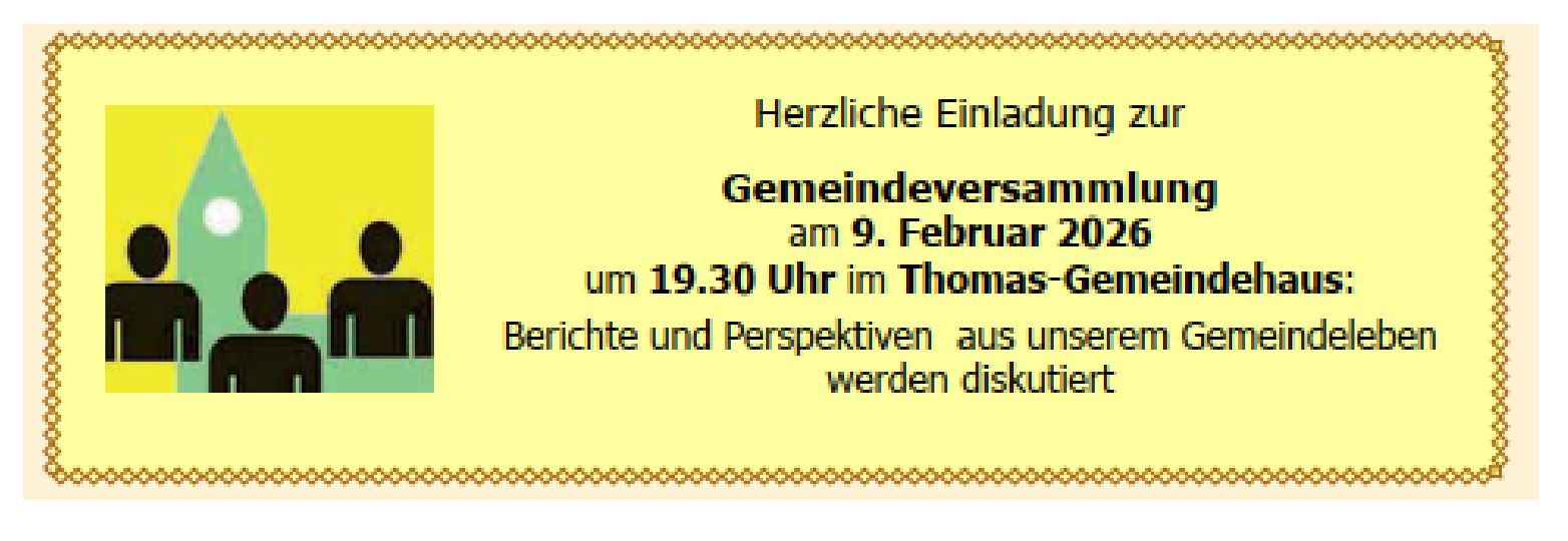 IIn der Zeit vom 04.01.2026 bis einschließlich 01.03.2026 finden die Gottesdienste im Thomasgemeindehaus, Alsweder Straße 38, statt.
